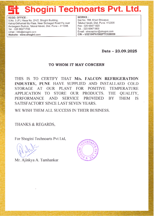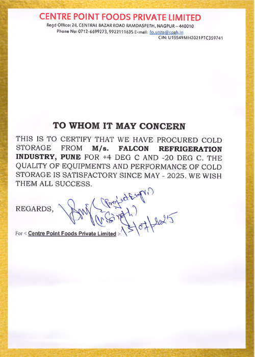 Falcon Refrigeration Industry is a Premium Company in manufacturing and installing complete cold storage room solutions. As manufacturers of the most refined cold storage room, we provide world-class quality products. We are committed to delivering, world-class PUF Panels and Refrigeration products to preserve food. We have complete cold chain solutions for Ice cream production and storage facilities, banana ripening facilities, Pharmacy product storage, Seafood industry, Horticulture / Floriculture, and any other application which needs refrigeration. We have a complete range of products to choose from, for your applications. We have been a trusted name in delivering the best solution for food processing and cold chain management. We pride ourselves on providing the most excellent solutions for our customers.